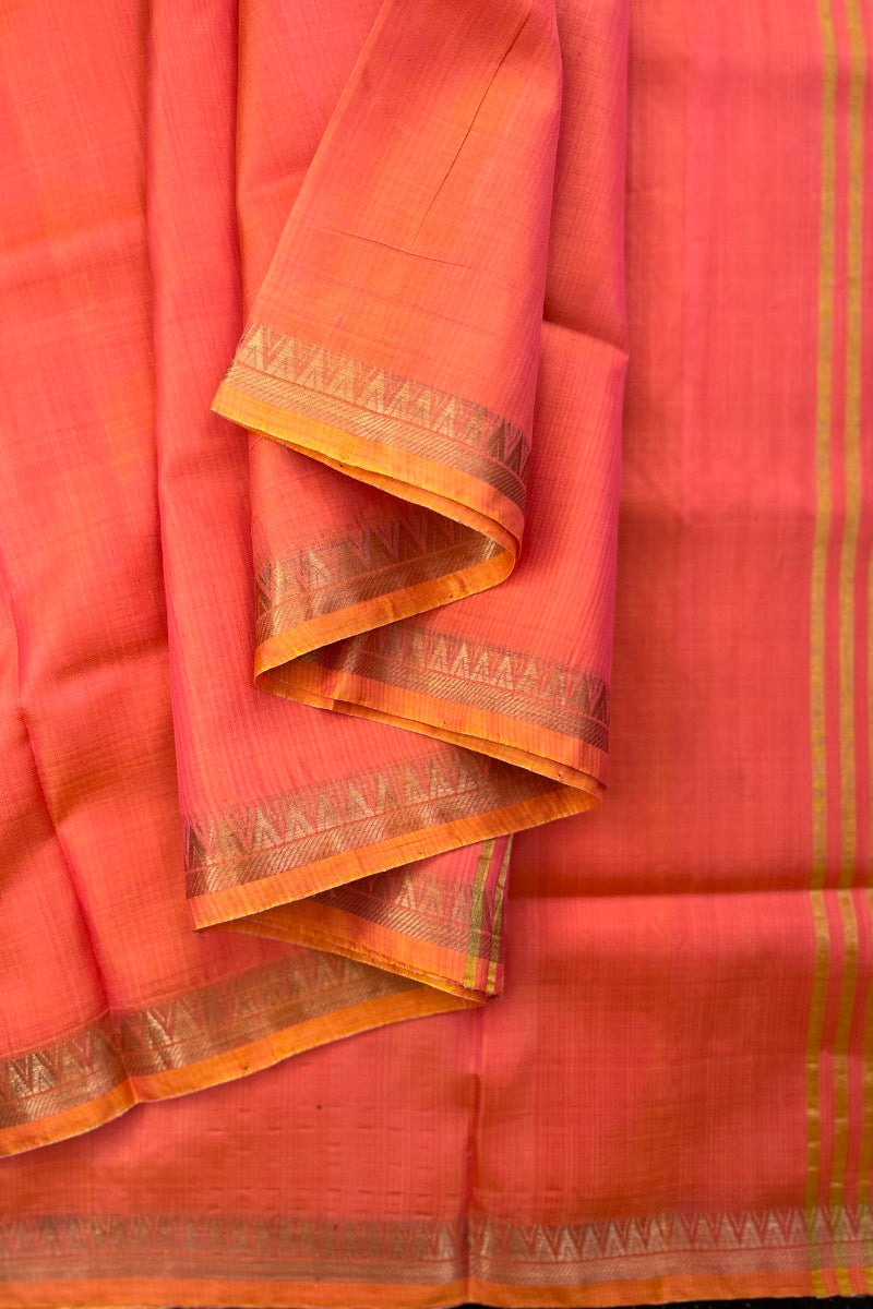 Dual Shaded Peachish Pink pure I’ll handloom Inchpar saree with running pallu and blouse