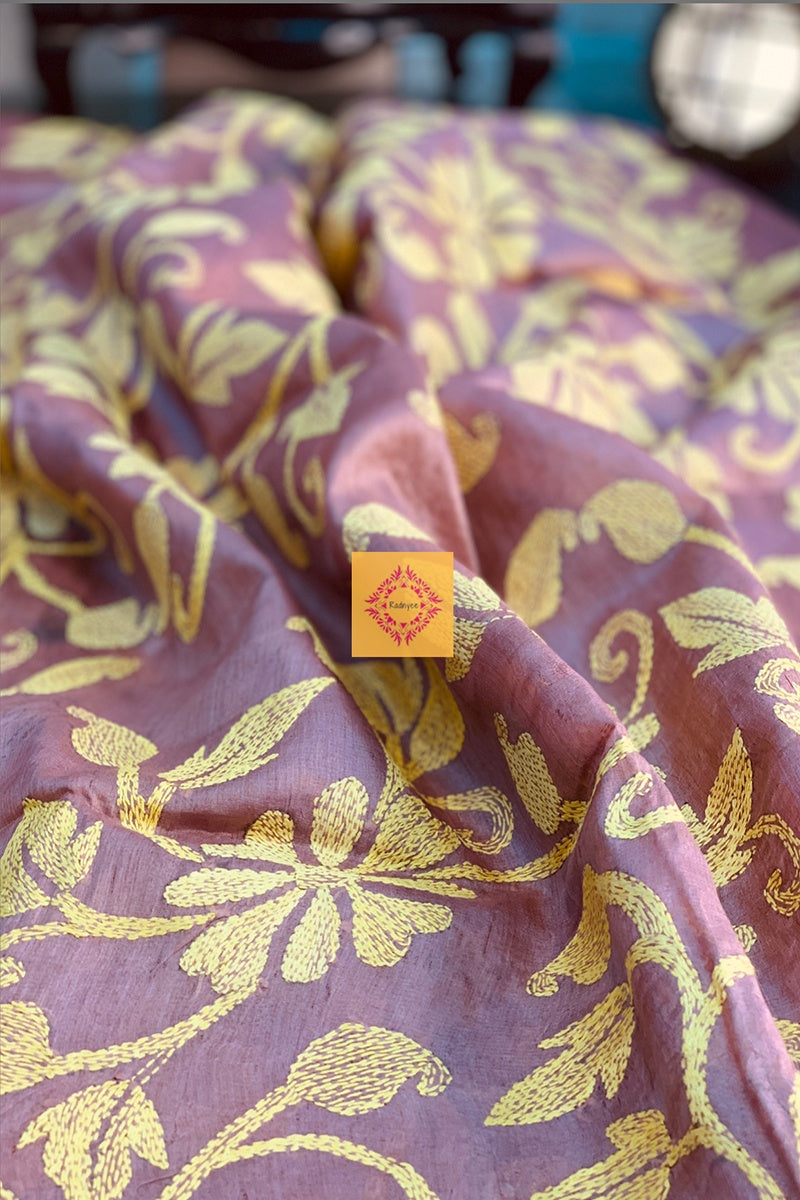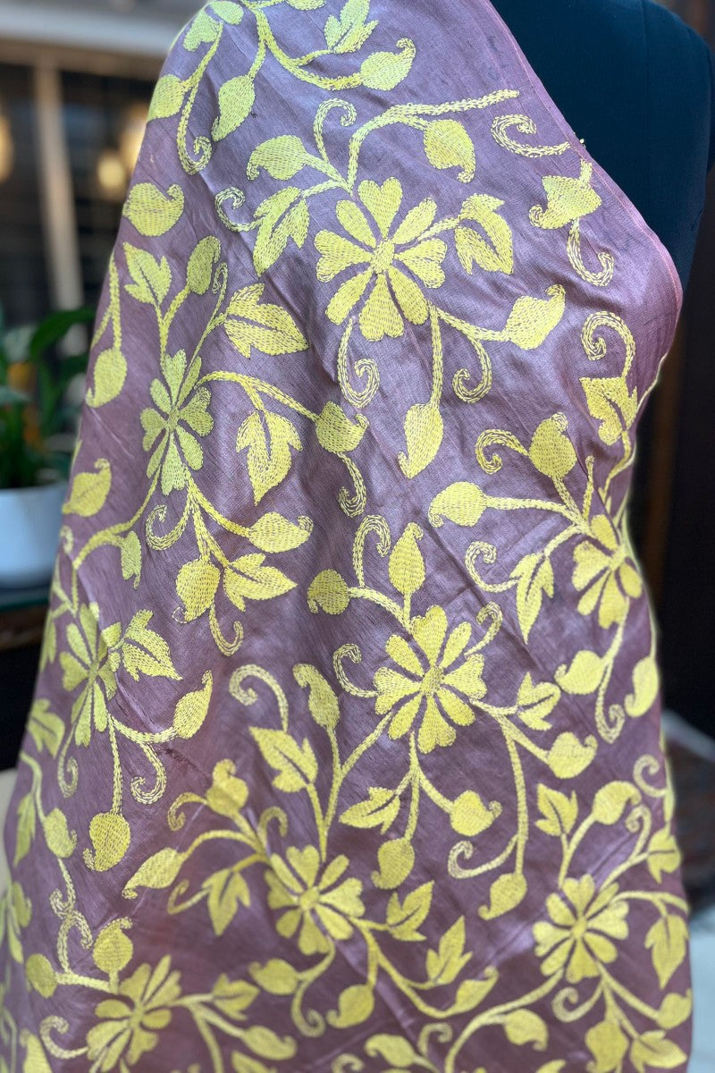 The beauty of these most loved and evergreen hand embroidered Kantha Dupattas is simply unmatched! Fabric-: Pure Tussar Silk