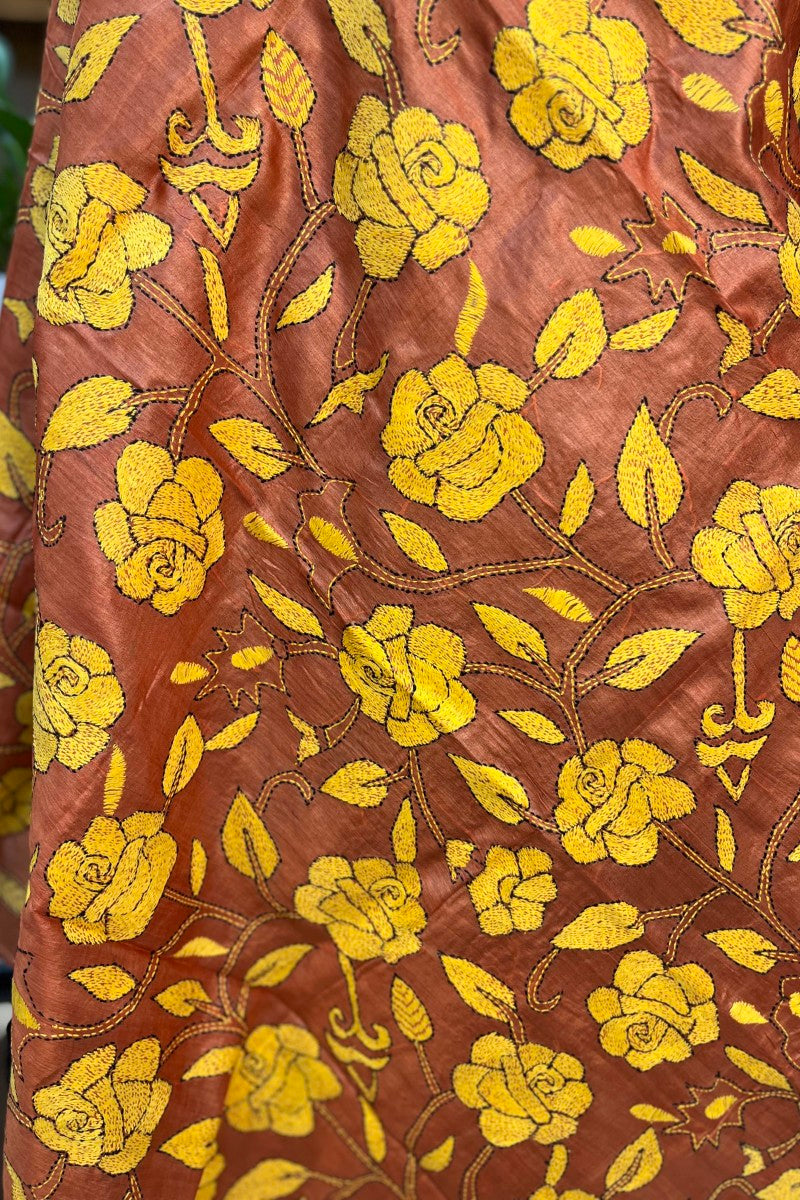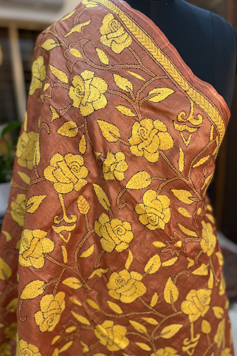 The beauty of these most loved and evergreen hand embroidered Kantha Dupattas is simply unmatched! Fabric-: Pure Tussar Silk