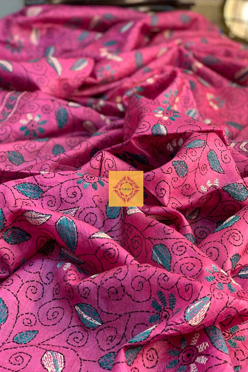 The beauty of these most loved and evergreen hand embroidered Kantha Dupattas is simply unmatched! Fabric-: Pure Tussar SilK