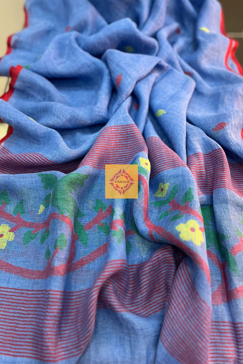 Radnyee brings exquisite handcrafted dupattas with needle Jamdani work on pure linen by our master artisans from West Bengal.It’s a highly prized textile technique from India which is mainly known for its intricate patterns and designs. It involves a meticulous process where skilled artisans works on the loom embroidery using needles creating each individual motif.