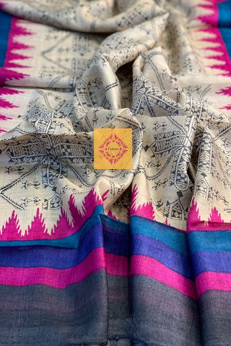 Dupattas Stoles Tussar Ghicha Handblock Printed
