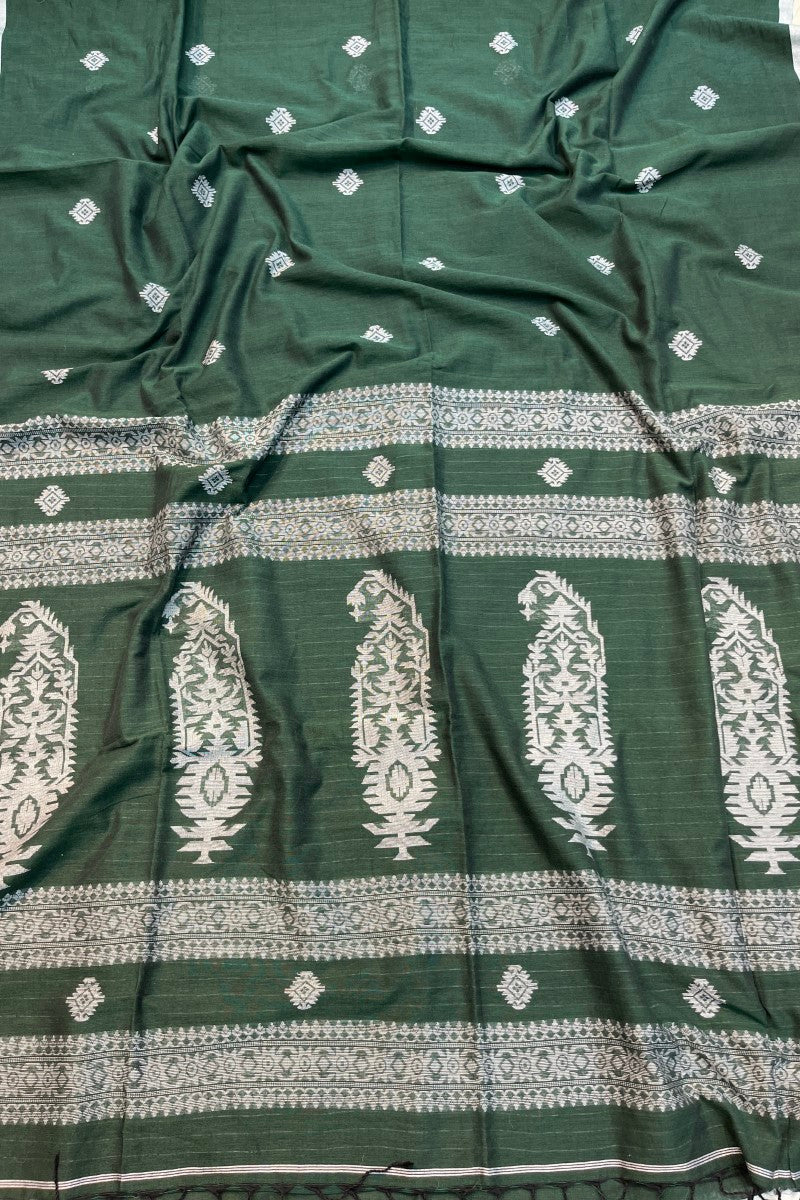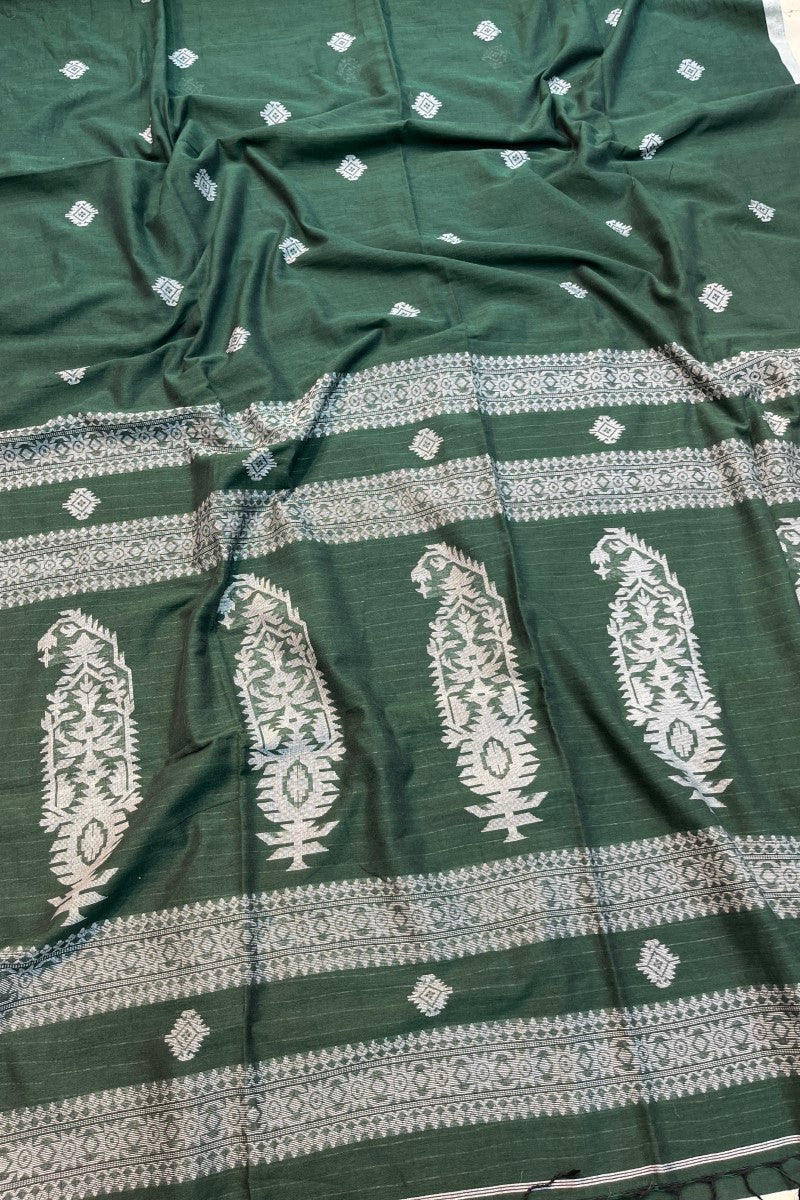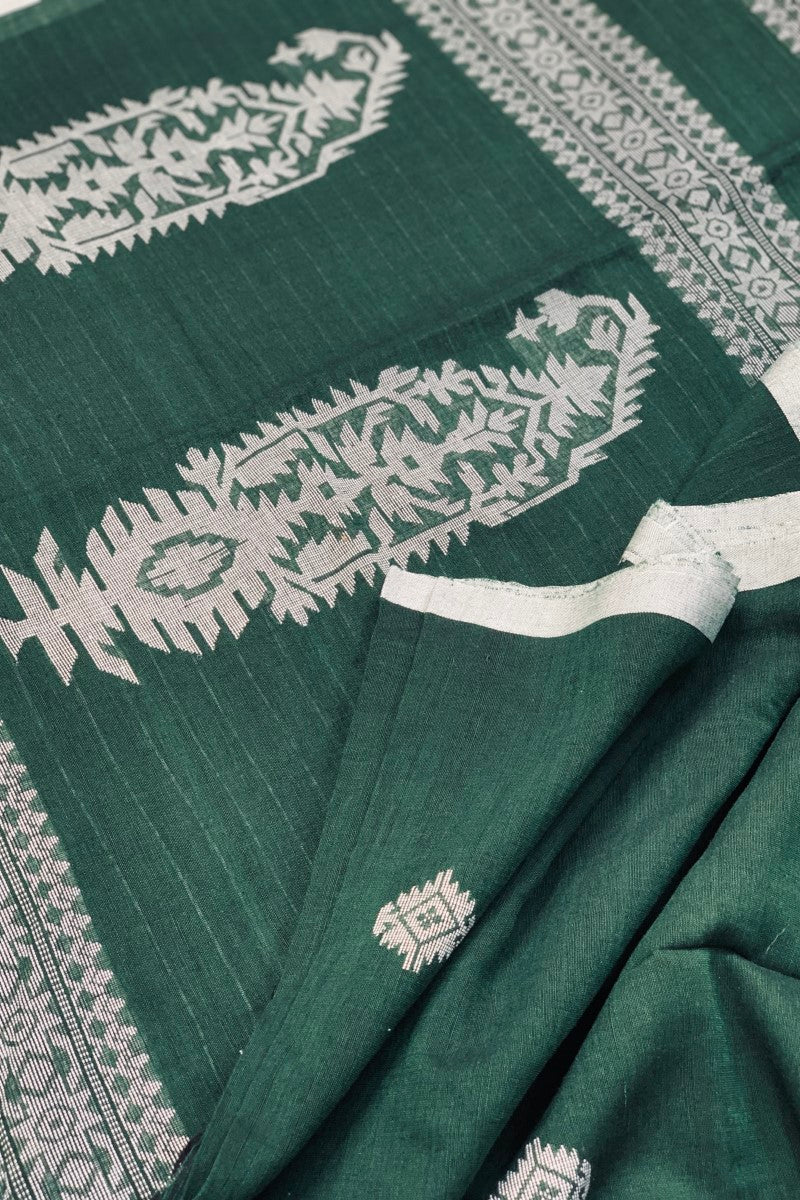 Presenting our exquisite handloom cotton Karat Border Jamdani Saree – a harmonious blend of tradition, comfort, and elegance. Handcrafted with love and dedication, this saree encapsulates the essence of Indian heritage and contemporary fashion.