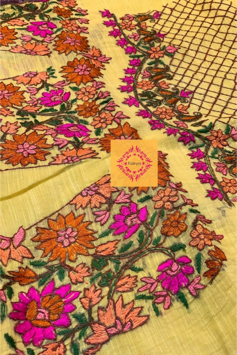 These beautifully done lambani masterpieces would steal your heart away!Radnyee brings you stunning hand embroidered lambani Blouse fabrics.Work done on full back, sleeves and front half neck.