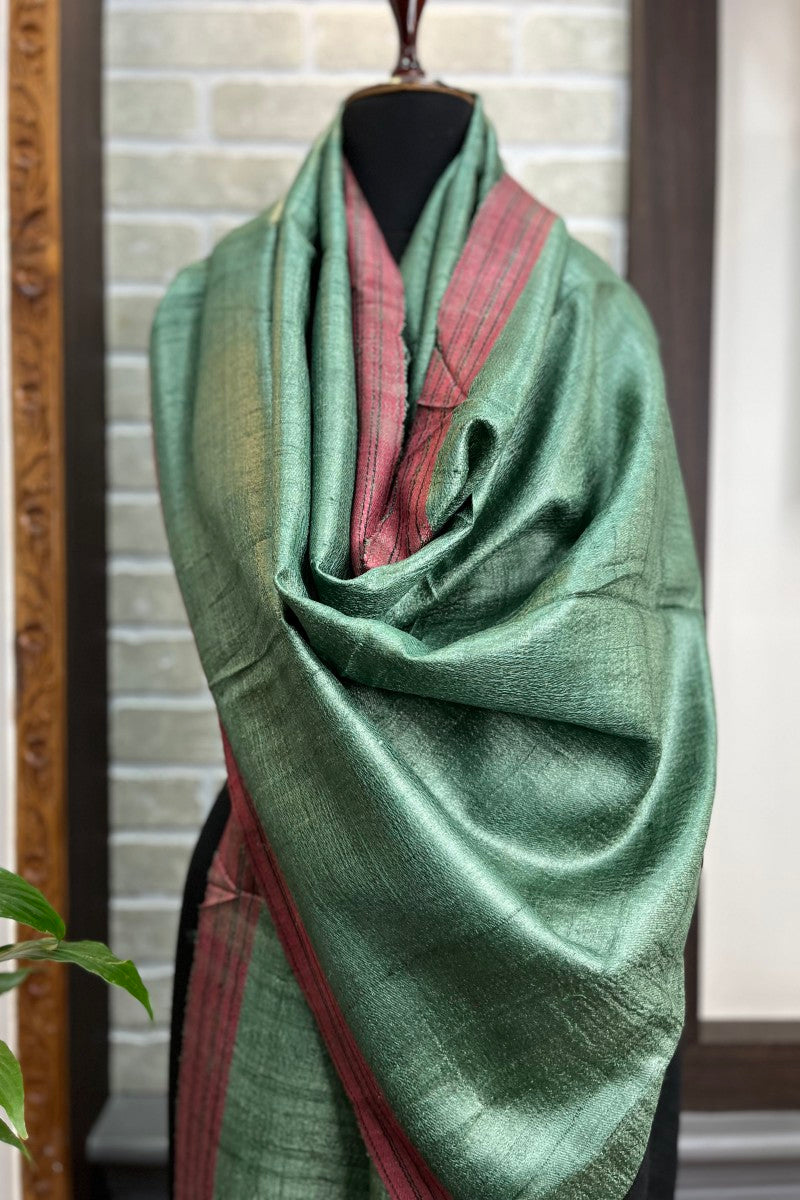 Elevate your style with this stunning light mint green handwoven pure tussar silk dupatta. The luxurious feel of the pure...