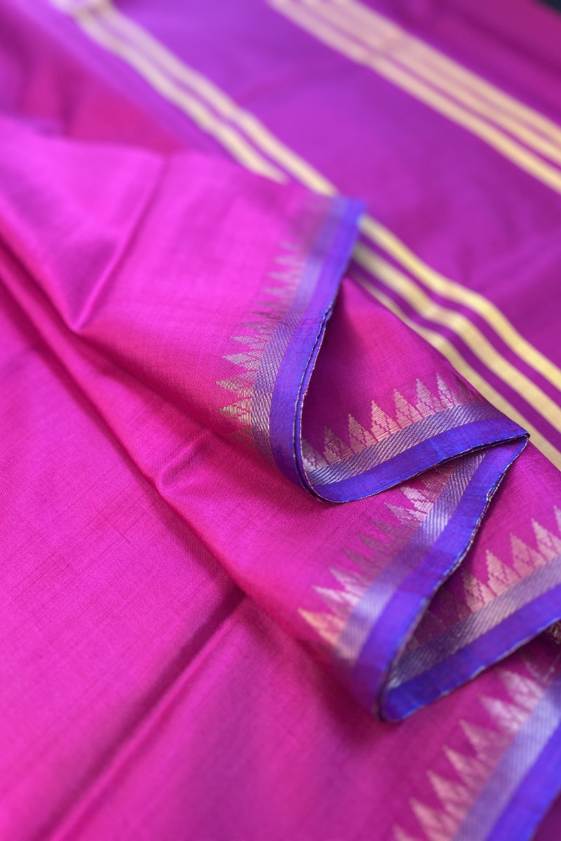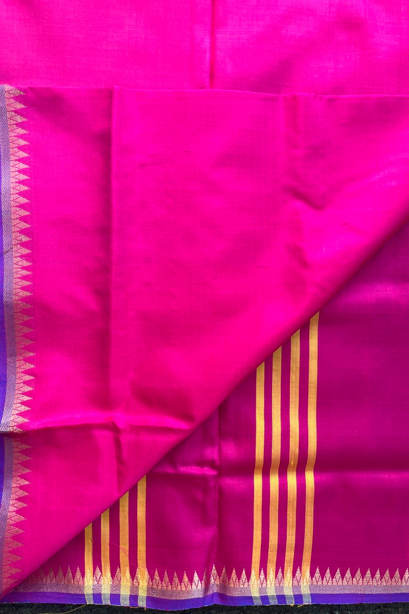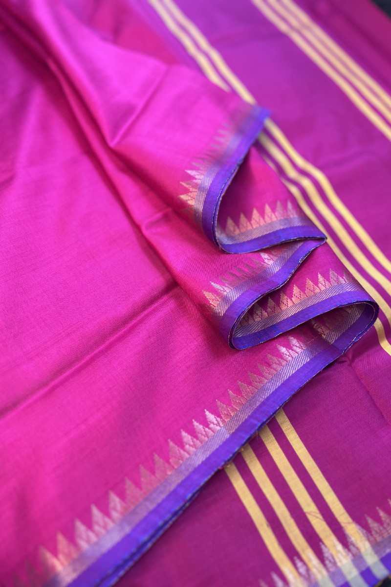 Magenta pure silk Inchpar handloom saree with Patti pallu and contrast blouse