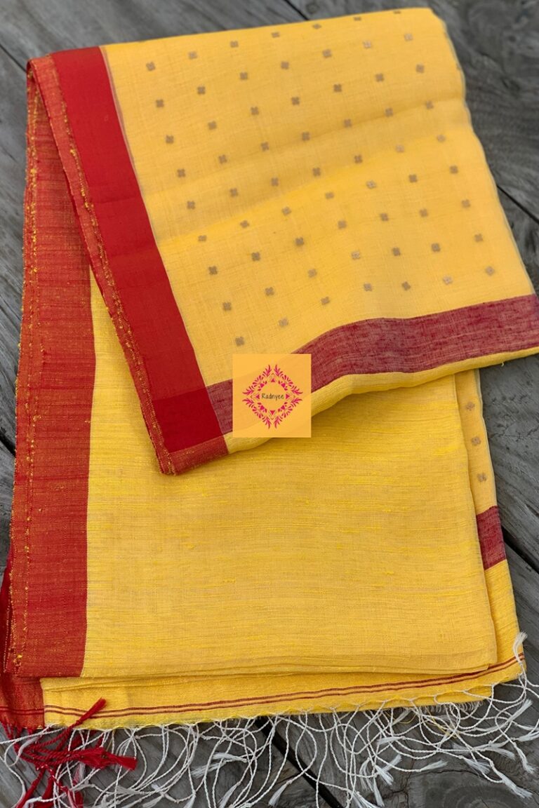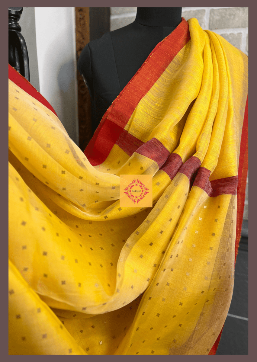 Matka silk is mainly obtained from Karnataka and Kashmir, however spinning is mostly done in the villages of Malda and Murshidabad in West Bengal by women. Mainly spun by hand, the filaments of the cocoons of this silk from Bihar were originally unwound and plied together on a mud pot, called Matka in the local language and that’s how it got its name. The slubs, irregularities and its texture resembling a tweed cloth gives it a unique character and a stunning look. Though Matka silk fabric is thick it is very light and airy! Sequins is weaved during the weaving process inside the thread.