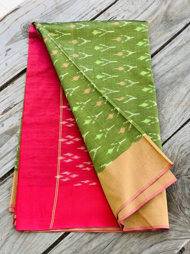 Indulge in these beautiful handwoven  cotton Ikkat sarees which are lightweight, gives great comfort and easy to drape and carry!