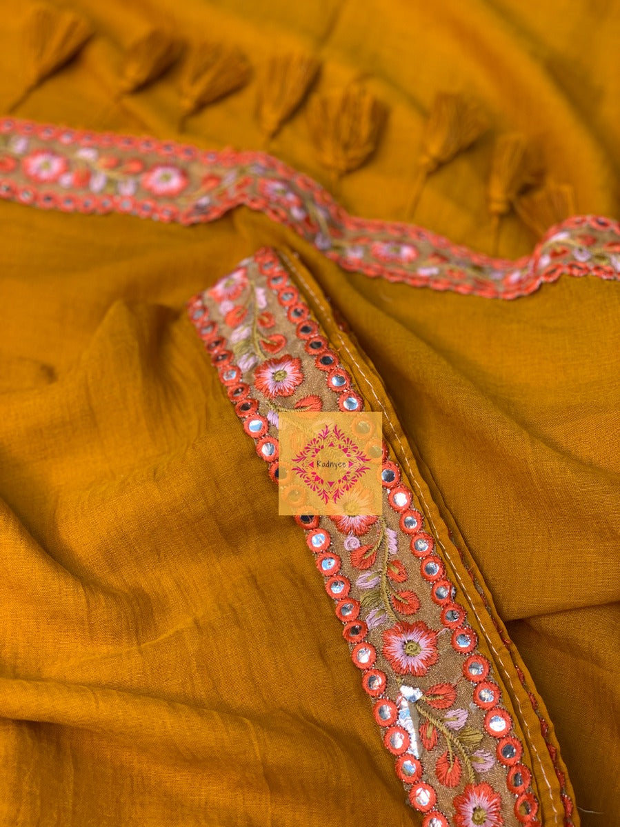 Soft featherlight plain charkha Mulmul cotton sarees revamped with elegant lace!