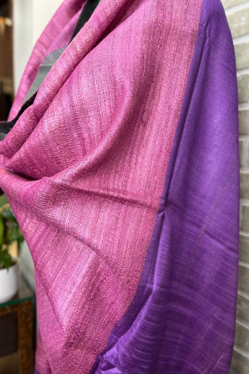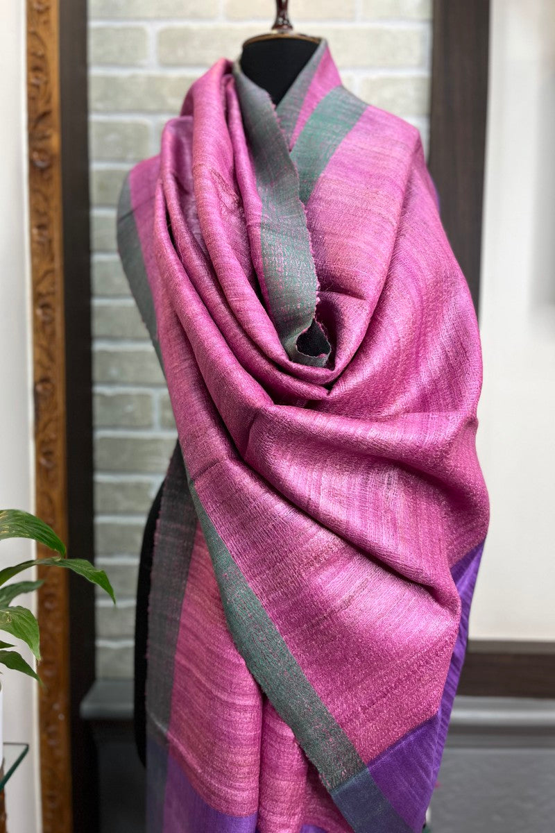 Orchid Pink with Peacock green coloured Border Pure Tussar Silk Dupatta