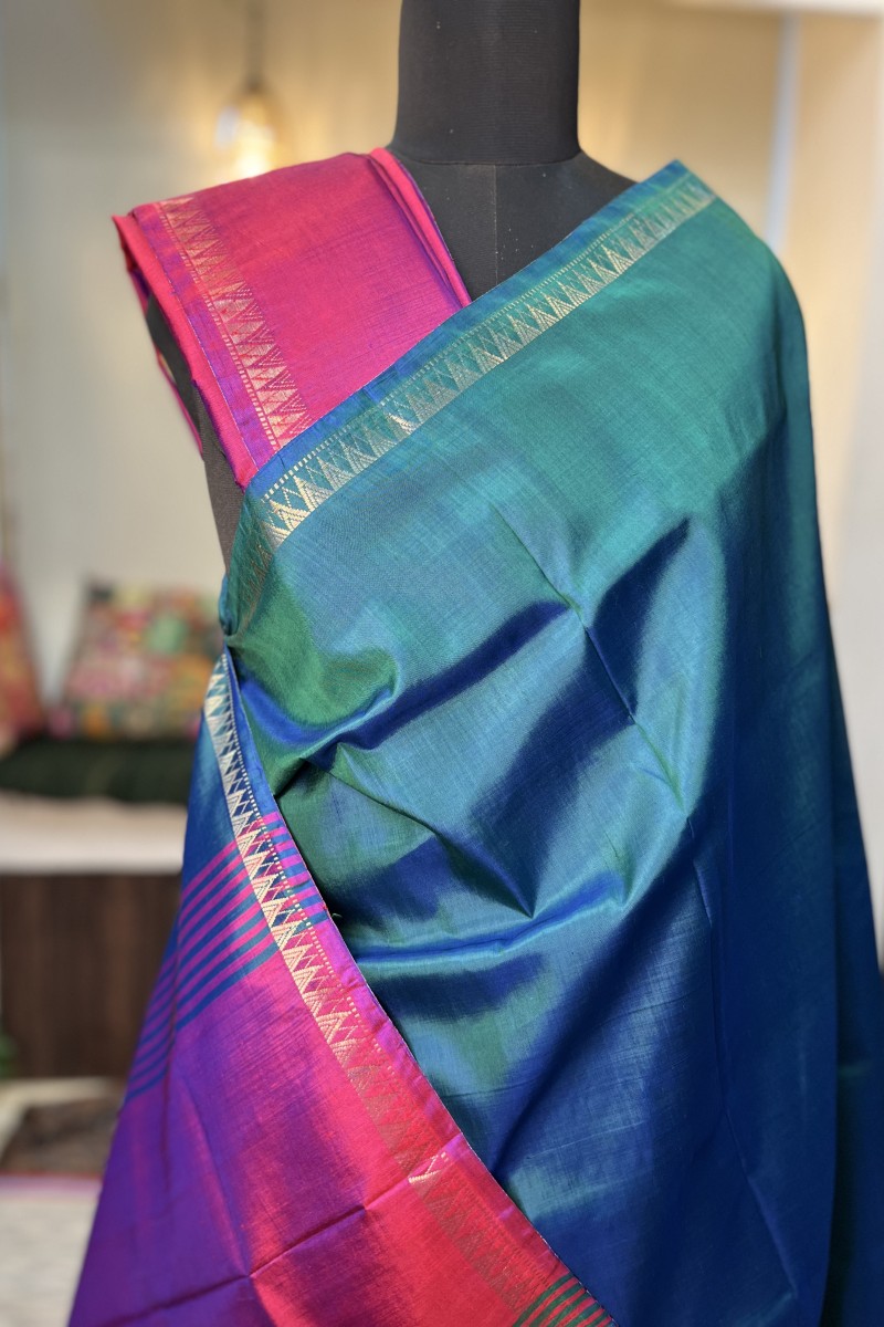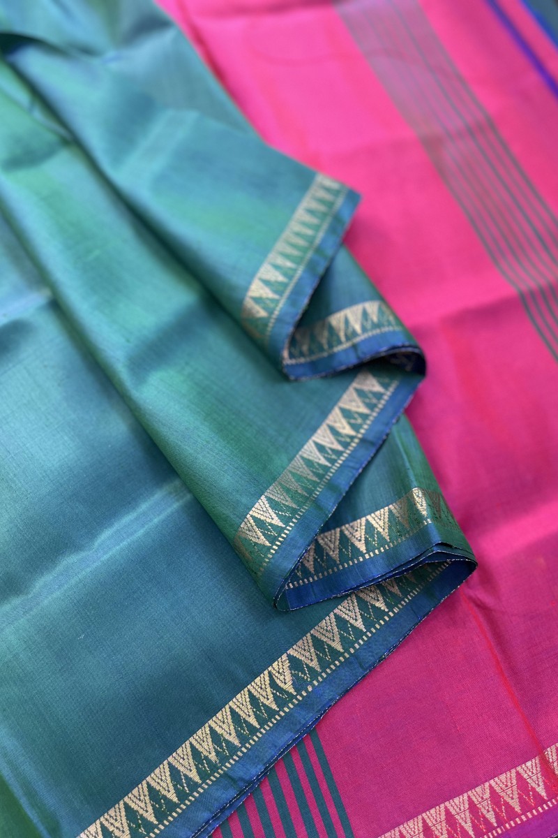 Peacock Green pure silk handloom Inchpar saree with contrast magenta pallu and blouse