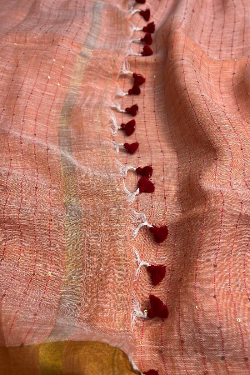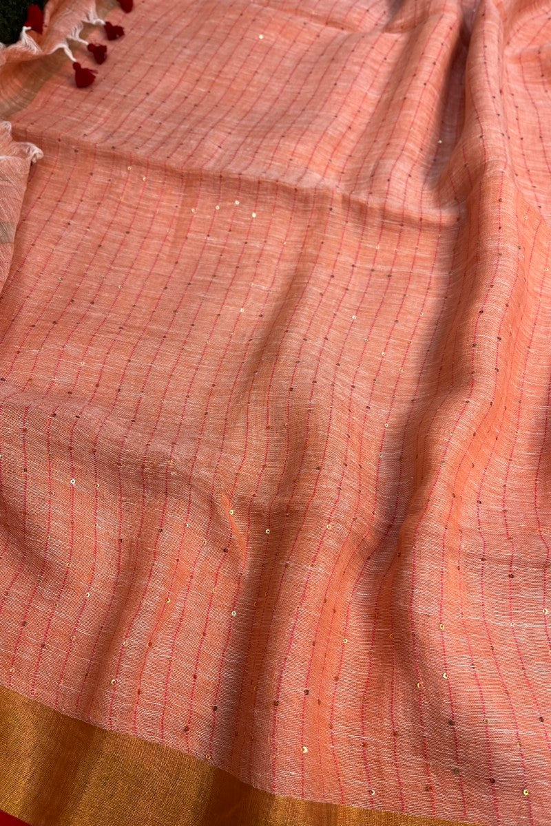 These beautiful pure , organic linen by linen sarees are made to make a style statement.