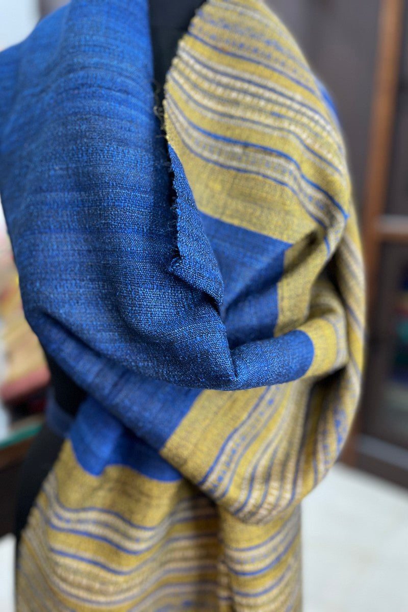 Experience the artistry of Bhujodi with this stunning blue stole adorned with intricate green weaving. The handwoven design showcases the rich heritage of Indian textiles.